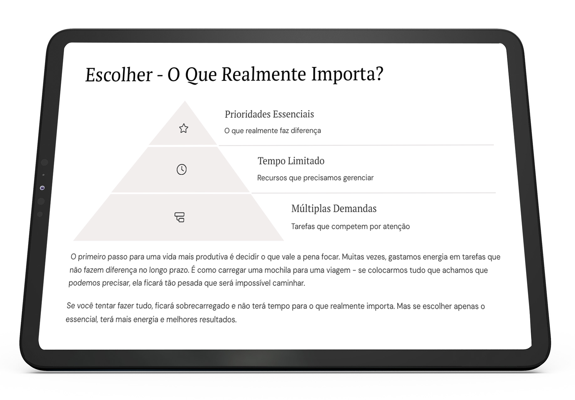 O problema não é que você não trabalha o suficiente. O problema é que o excesso de tarefas, distrações e compromissos desnecessários consome sua energia e deixa você sem tempo para o que realmente faz diferença.
